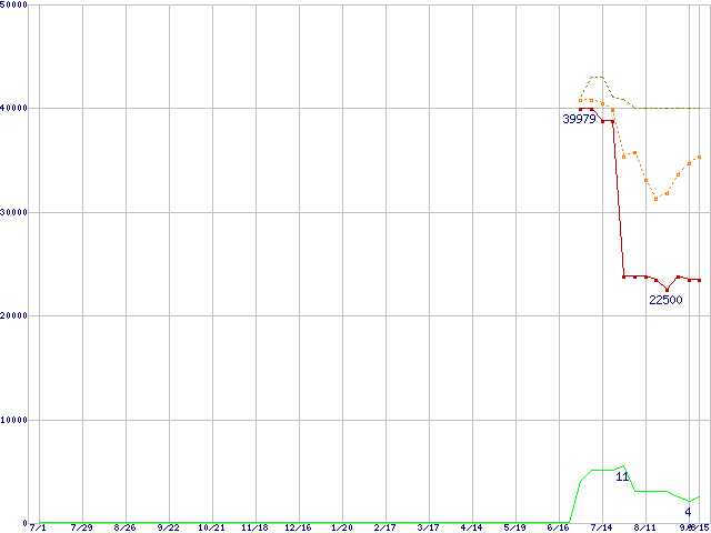 | Athlon 64 X2 4000+ (2.0GHz,L2 1MB×2)の価格推移 | | | (2005年7月1日~2006年9月15日) |