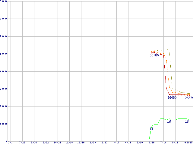 | Athlon 64 X2 4200+ (2.2GHz,L2 512KB×2,TDP65W)の価格推移 | | | (2005年7月1日~2006年9月15日) |