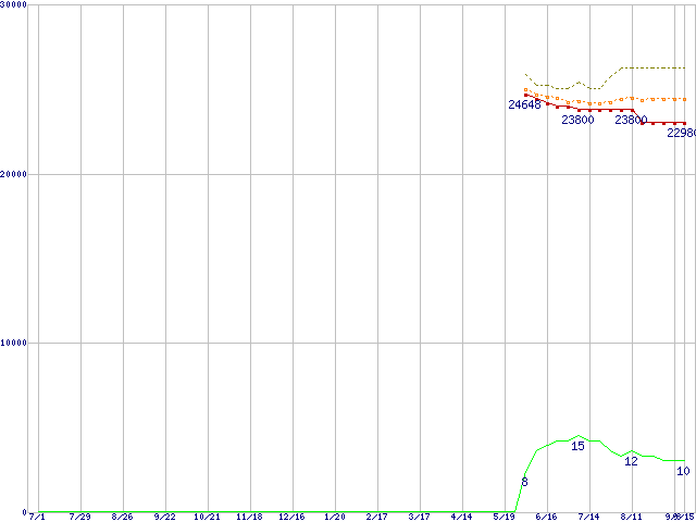 | Core Duo T2300E (1.66GHz)の価格推移 | | | (2005年7月1日~2006年9月15日) |