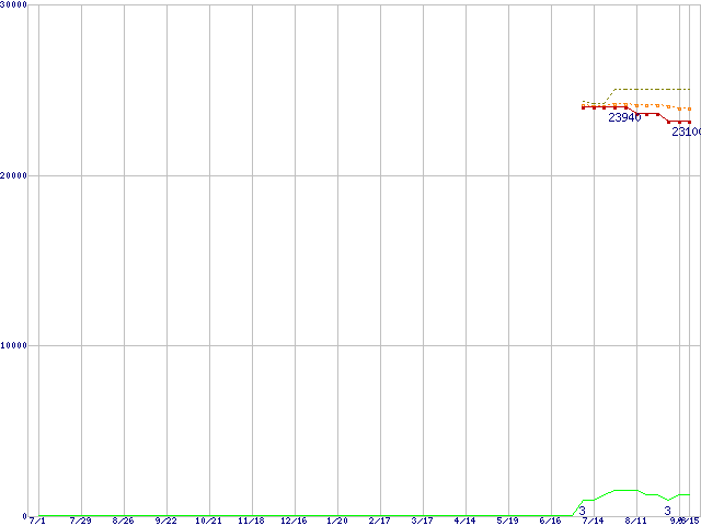 | Turion 64 X2 TL-50 (1.6GHz,256KB×2)の価格推移 | | | (2005年7月1日~2006年9月15日) |