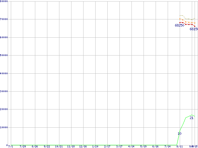 | Core 2 Duo E6700 (2.66GHz,L2 4MB)の価格推移 | | | (2005年7月1日~2006年9月15日) |