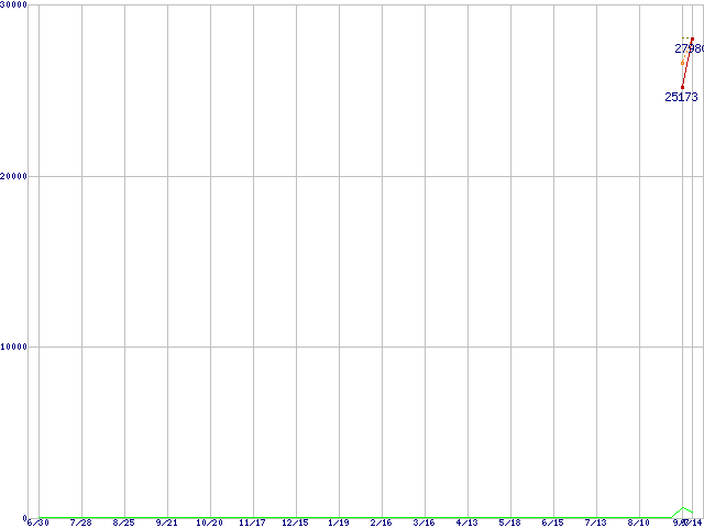 | HDT725050VLA360 (500GB,16MB)の価格推移 | | | (2005年6月30日~2006年9月14日) |
