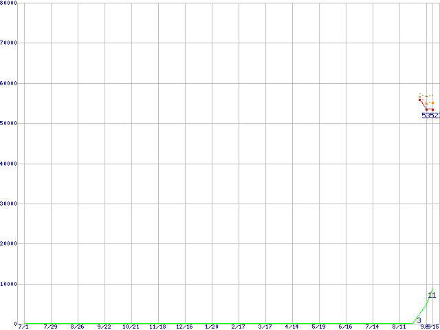 | Core 2 Duo T7400 (2.16GHz,L2 4MB)の価格推移 | | | (2005年7月1日~2006年9月15日) |