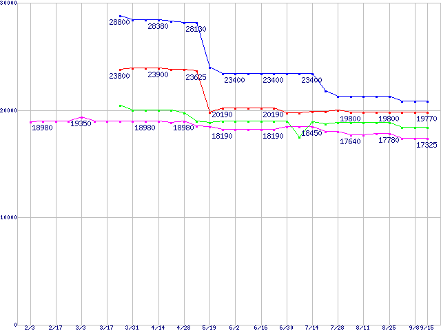 Socket AM2 (FSB 1000MHz,Dual Core L2 1MB)の最安値推移