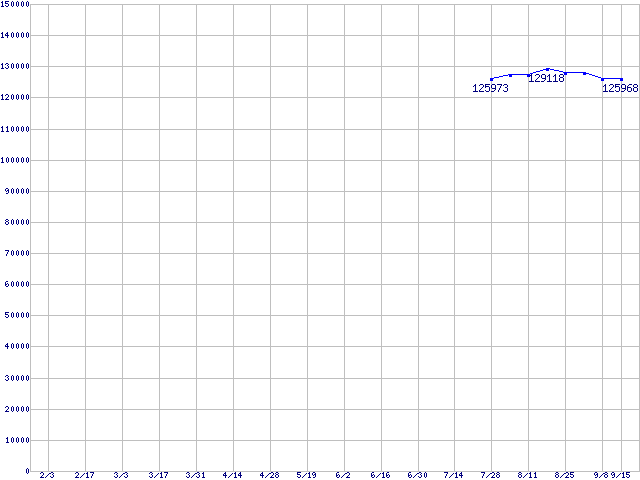 | LGA 775 (FSB 1066MHz,L2 4MB,Dual Core,EM64T対応)の最安値推移 | | | (2006年2月3日~2006年9月15日) |