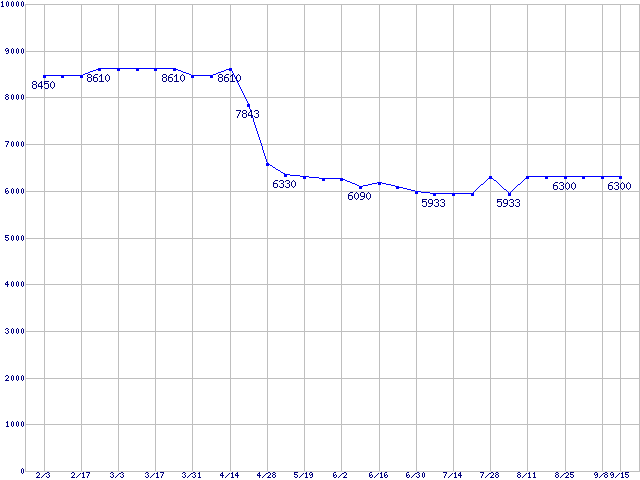 Core Duo向けSocket 478 (FSB 533MHz,L2 1MB)の最安値推移