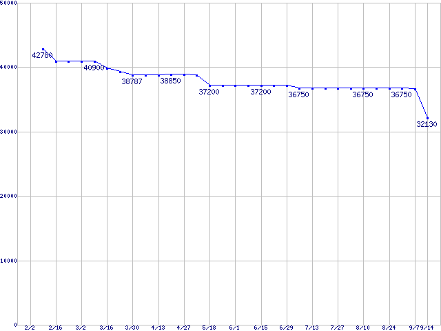 | WD Raptor X (10000rpm,Serial ATA/150,16MB,NCQ)の最安値推移 | | | (2006年2月2日~2006年9月14日) |