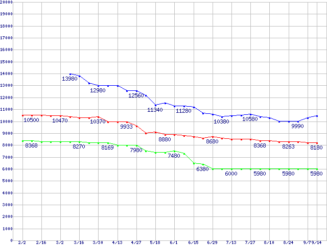 WD Caviar SE (7200rpm,Serial ATA II,8MB)の最安値推移