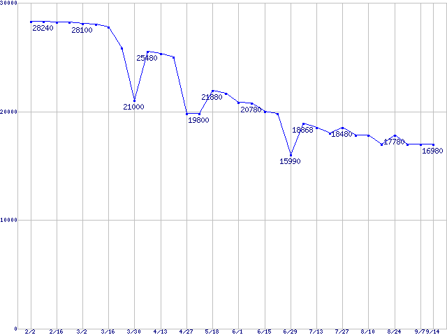 Deskstar 7K80 (7200rpm,Serial ATA II/3Gbps)の最安値推移