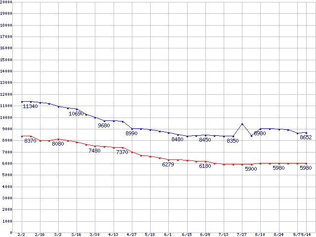 Deskstar 7K160 (7200rpm,Ultra ATA/133,8MB)の最安値推移