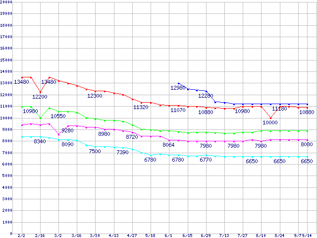 | DiamondMax 10 (7200rpm,Ultra ATA/133,RoHS指令準拠)の最安値推移 | | | (2006年2月2日~2006年9月14日) |