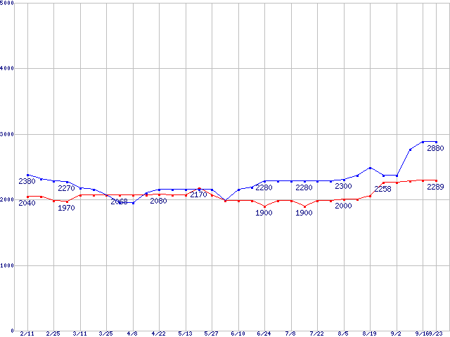 ※このグラフは過去のデータも税率5%相当に調整した税込み相当額のグラフです。