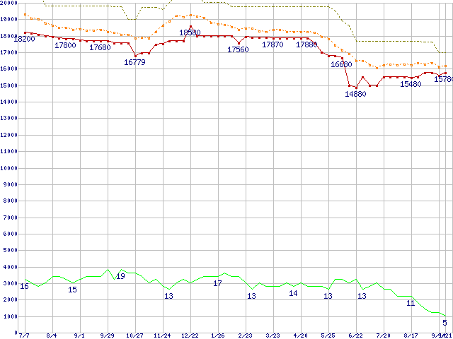 | WD740GD (74.3GB)の価格推移 | | | (2005年7月7日~2006年9月21日) |