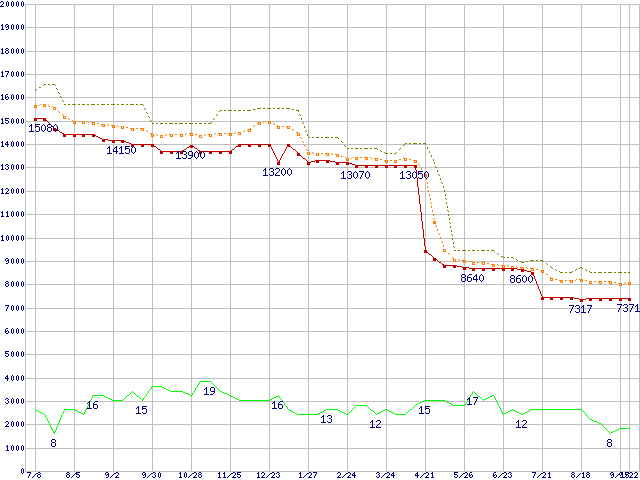 | Celeron D 351 (3.20GHz)の価格推移 | | | (2005年7月8日~2006年9月22日) |
