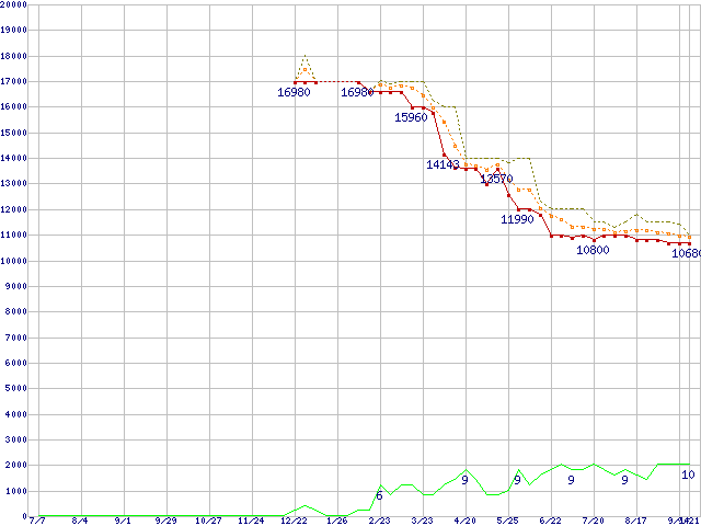 | WD3200KS (320GB)の価格推移 | | | (2005年7月7日~2006年9月21日) |