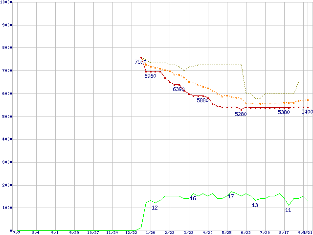 | 6V080E0 (80GB,8MB)の価格推移 | | | (2005年7月7日~2006年9月21日) |