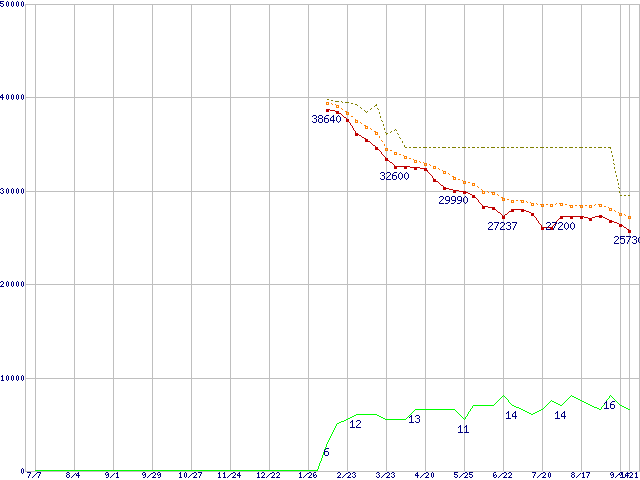 | 7H500R0 (500GB)の価格推移 | | | (2005年7月7日~2006年9月21日) |