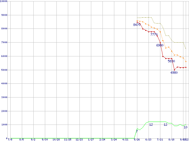 | Sempron 2800+ (1.6GHz,L2 128KB)の価格推移 | | | (2005年7月8日~2006年9月22日) |