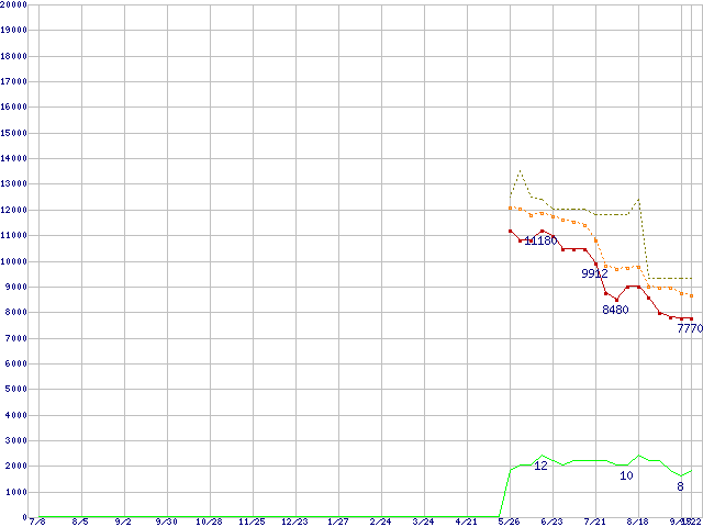 | Sempron 3400+ (1.8GHz,L2 256KB)の価格推移 | | | (2005年7月8日~2006年9月22日) |