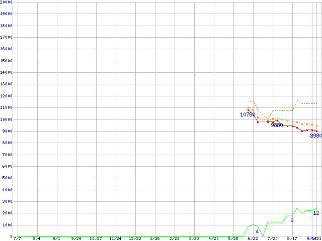 | ST3250620A (250GB,16MB)の価格推移 | | | (2005年7月7日~2006年9月21日) |