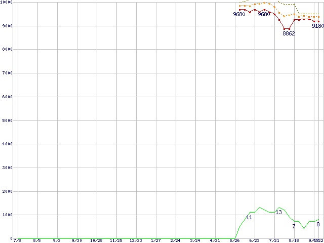 | Celeron D 352 (3.20GHz)の価格推移 | | | (2005年7月8日~2006年9月22日) |