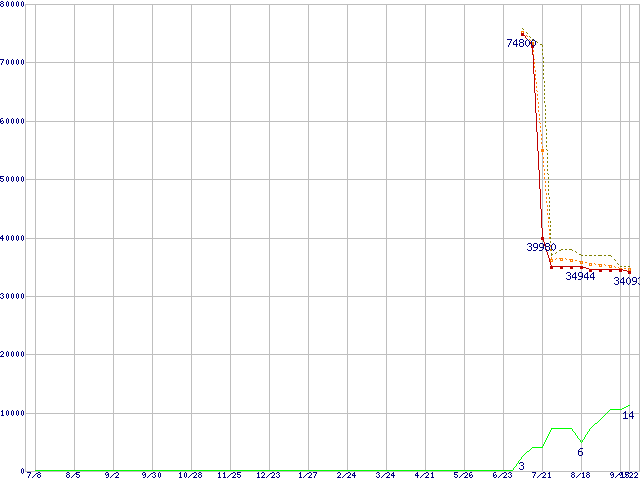 | Athlon 64 X2 4600+ (2.4GHz,L2 512KB×2,TDP65W)の価格推移 | | | (2005年7月8日~2006年9月22日) |