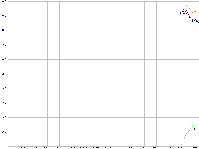 | HDT725025VLA380 (250GB,8MB)の価格推移 | | | (2005年7月7日~2006年9月21日) |