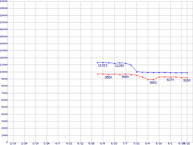 LGA 771(FSB 667MHz,Dual Core,L2 2MB×2)の最安値推移