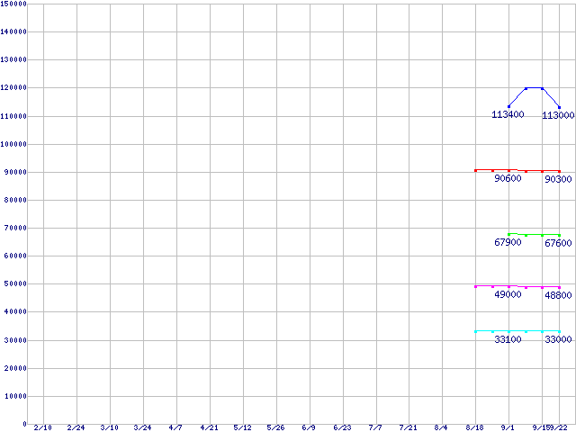 | Socket F (FSB 1000MHz,L2 1MBx2,Dual Core,TDP 95W)の最安値推移 | | | (2006年2月10日~2006年9月22日) |
