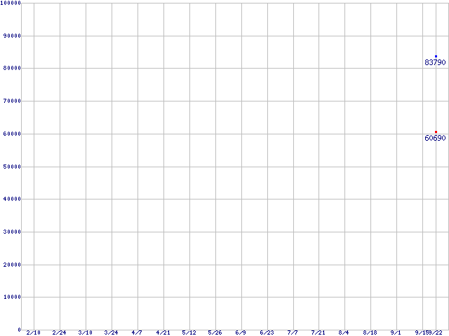 | Socket F (FSB 1000MHz,L2 1MBx2,Dual Core,TDP 68W)の最安値推移 | | | (2006年2月10日~2006年9月22日) |