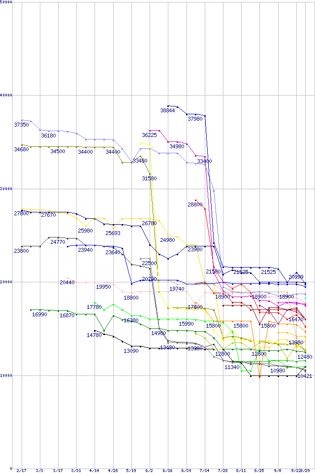 | CPU主要製品(最安値1万円~2万円未満)の最安値推移 | | | (2006年2月17日~2006年9月29日) |