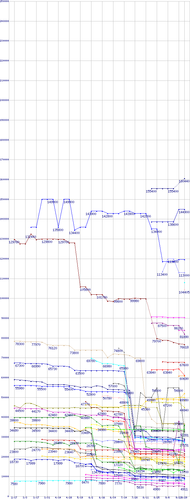 | AMD系CPUの最安値推移 | | | (2006年2月17日~2006年9月29日) |