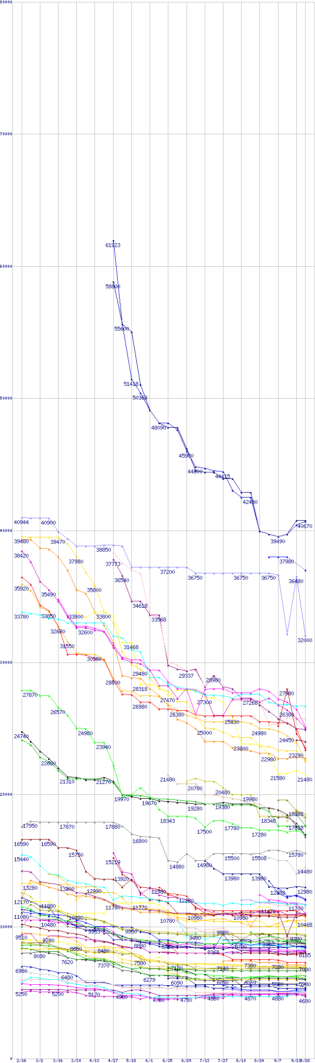 | HDD主要製品の最安値推移 | | | (2006年2月16日~2006年9月28日) |