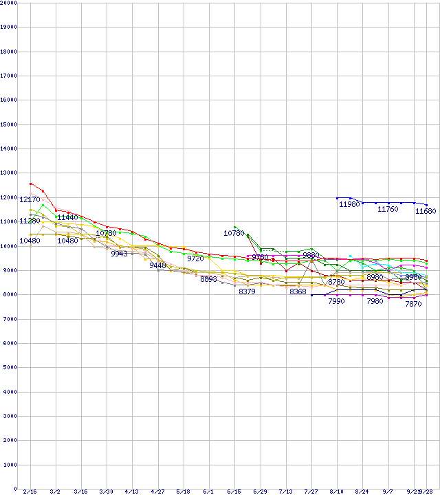 | HDD 250~300GB未満の最安値推移 | | | (2006年2月16日~2006年9月28日) |