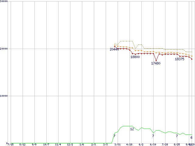 | Turion 64 MT-32 (1.8GHz,512KB)の価格推移 | | | (2005年7月15日~2006年9月29日) |