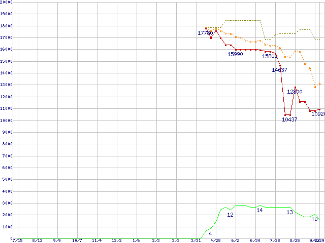 | Celeron M 430 (1.73GHz)の価格推移 | | | (2005年7月15日~2006年9月29日) |