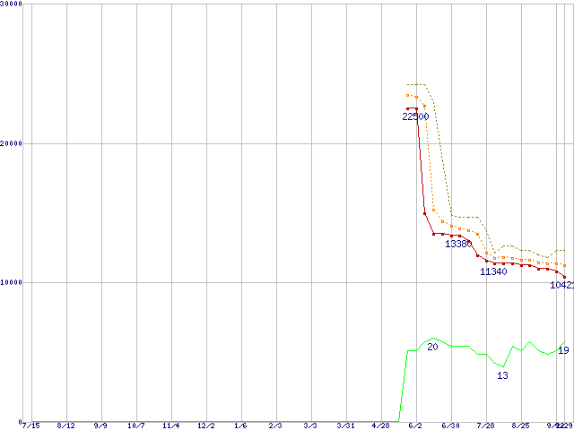 | Athlon 64 3500+ (2.2GHz,L2 512KB)の価格推移 | | | (2005年7月15日~2006年9月29日) |