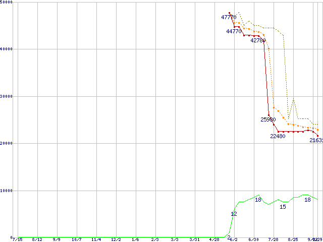 | Athlon 64 X2 4200+ (2.2GHz,L2 512KB×2)の価格推移 | | | (2005年7月15日~2006年9月29日) |
