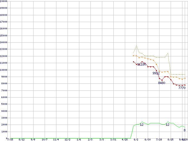 | Sempron 3400+ (1.8GHz,L2 256KB)の価格推移 | | | (2005年7月15日~2006年9月29日) |