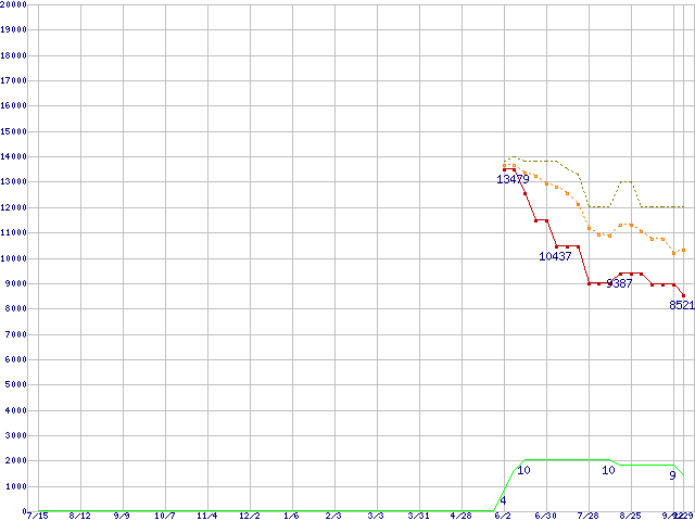 | Sempron 3500+ (2.0GHz,L2 128KB)の価格推移 | | | (2005年7月15日~2006年9月29日) |