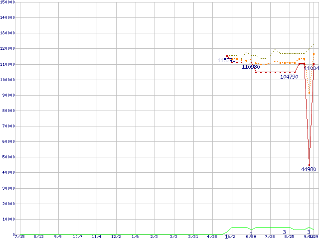 | Dual-Core Xeon 5080(3.73GHz)の価格推移 | | | (2005年7月15日~2006年9月29日) |