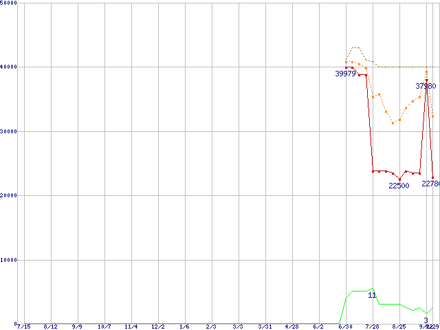 | Athlon 64 X2 4000+ (2.0GHz,L2 1MB×2)の価格推移 | | | (2005年7月15日~2006年9月29日) |