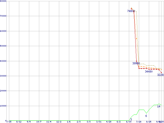 | Athlon 64 X2 4600+ (2.4GHz,L2 512KB×2,TDP65W)の価格推移 | | | (2005年7月15日~2006年9月29日) |