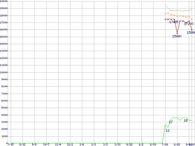 | Pentium D 915 (2.8GHz)の価格推移 | | | (2005年7月15日~2006年9月29日) |