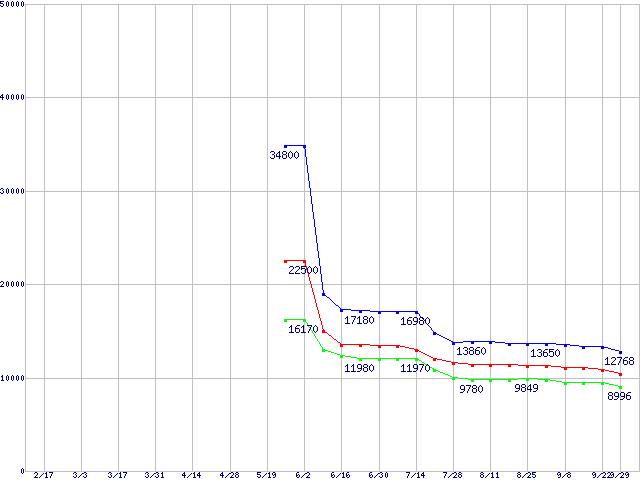 Socket AM2 (FSB 1000MHz,Dual Core,TDP65W)の最安値推移