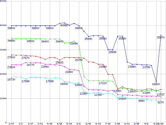 | Socket 939 (FSB 1000MHz)の最安値推移 | | | (2006年2月17日~2006年9月29日) |