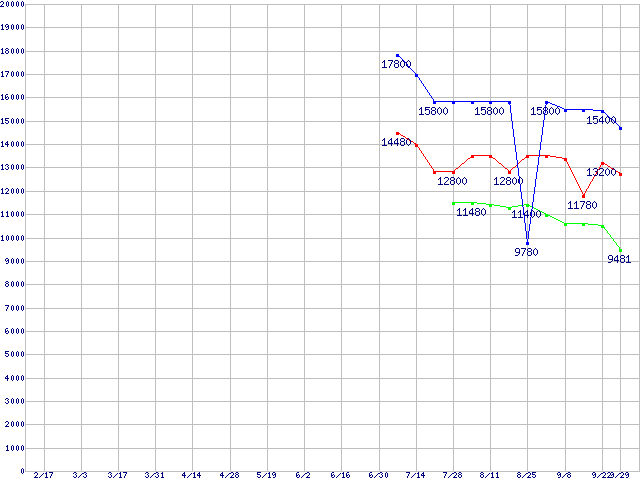 Core Duo向けSocket 478 (FSB 667MHz,L2 2MB,Dual Core)の最安値推移