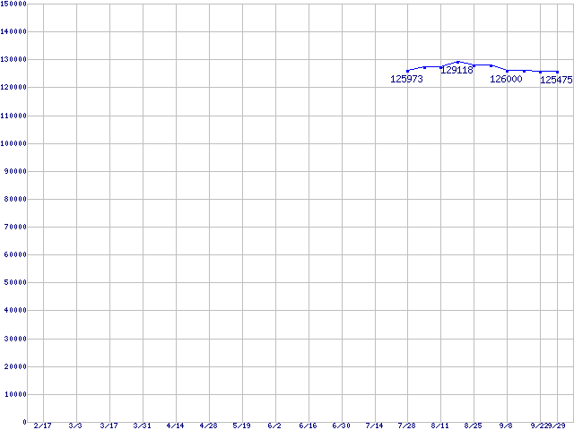 | LGA 775 (FSB 1066MHz,L2 4MB,Dual Core,EM64T対応)の最安値推移 | | | (2006年2月17日~2006年9月29日) |
