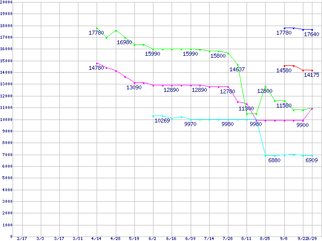 Socket 478 (FSB 533MHz,L2 256KB)の最安値推移