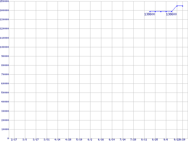 | Socket AM2 (FSB 1000MHz,L2 1MBx2,Dual Core,TDP 125W)の最安値推移 | | | (2006年2月17日~2006年9月29日) |